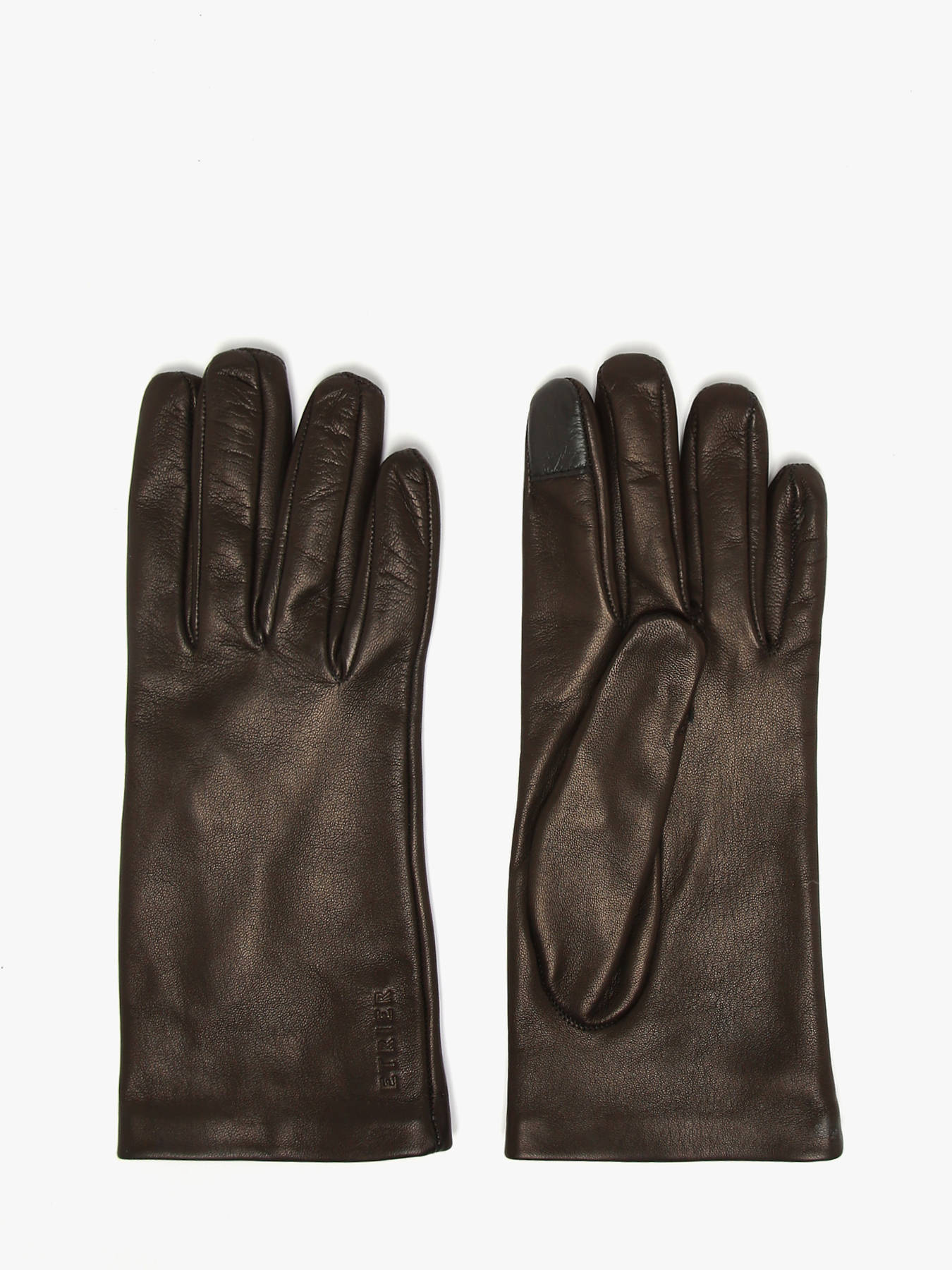 Les gants Etrier fabriqués en Italie sont réalisés en cuir d’agneau avec zones tactiles au pouce et à l’index pour une utilisation intuitive du téléphone. L’intérieur en soie apporte une sensation douce et élégante.