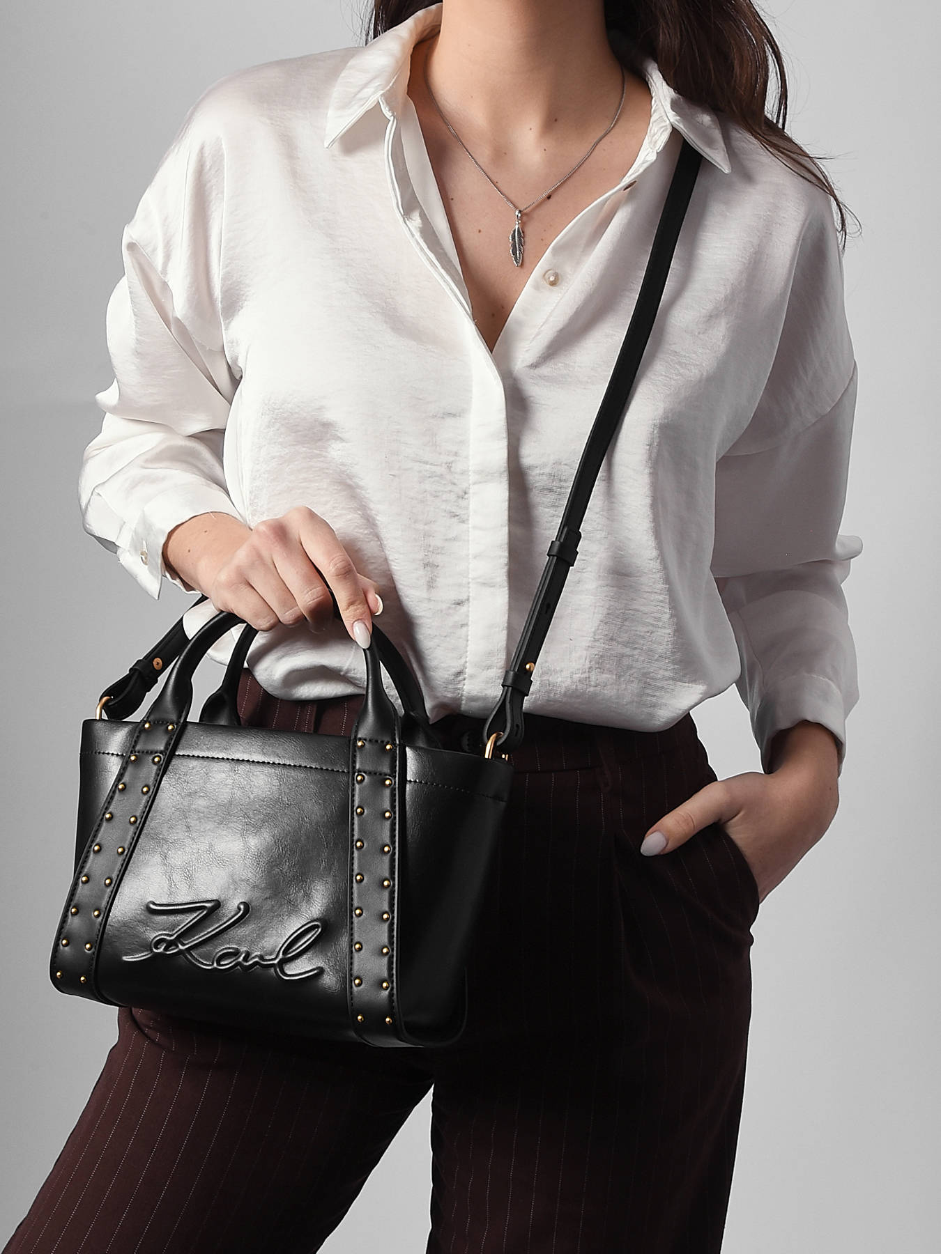 Le sac porté main K VILLE Karl Lagerfeld, fabriqué en P.U. de qualité, allie modernité et praticité dans un format élégant. Son extérieur lisse et résistant est équipé d’une fermeture zippée sécurisée, garantissant la protection de vos effets personnels. La anse de 8 cm offre un porté main confortable, tandis que la bandoulière réglable permet d’opter pour un porté en bandoulière selon vos envies, pour un style plus décontracté ou sophistiqué. À l’intérieur, un emplacement dédié aux cartes bancaires facilite l’organisation de vos indispensables, même dans un format compact. Léger et fonctionnel, ce sac répond parfaitement aux besoins d’une vie urbaine dynamique, tout en reflétant l’esthétique contemporaine et chic de Karl Lagerfeld. Un accessoire polyvalent, idéal pour accompagner toutes vos tenues avec élégance et simplicité, en toute occasion.